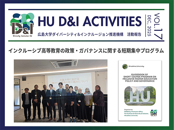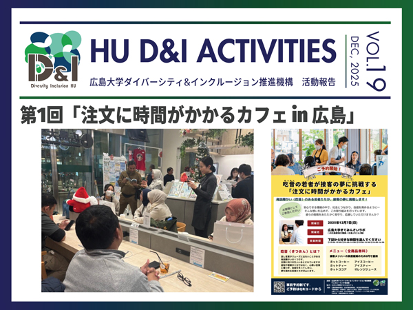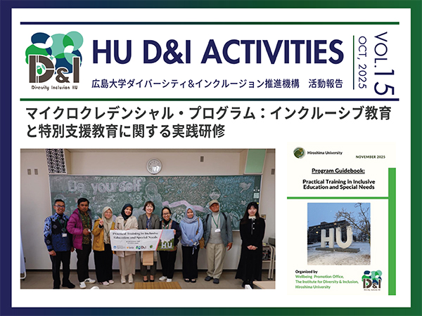 Activity 活動報告 ※横方向にスクロールできます すべて アクセシビリティセンターウェルビーイング推進室ダイバーシティ研究センターマネジメント部門特別支援教育実践センター ダイバーシティ研究センター 2026年02月24日 開催 小学生と高齢者で「三永のみんなでゆるスポーツを楽しもう会」を開催しました マネジメント部門 2025年12月21日 開催 第9回 広島大学・国立特別支援教育総合研究所ジョイントセミナー「インクルーシブな未来を築くー文化をこえてひらく教育・多様性・地域支援のかたちー」を開催しました ウェルビーイング推進室 2025年12月07日 開催 第1回「注文に時間がかかるカフェ in広島」を開催しました ウェルビーイング推進室 2025年12月05日 開催 インクルーシブ高等教育の政策・ガバナンスに関する短期集中プログラムを実施しました ダイバーシティ研究センター 2025年11月24日 開催 モスク見学×ゆるスポーツ体験会を開催しました ウェルビーイング推進室 2025年11月07日 開催 インドネシア幼稚園教員向けインクルーシブ幼児教育能力強化プログラムを実施しました マネジメント部門 2025年10月12日 開催 第8回 広島大学・国立特別支援教育総合研究所ジョイントセミナー「インクルージョンとウェルビーイングのためのシステム変革-政策から実践へ、学際的対話を通じて-」を開催しました ウェルビーイング推進室 2025年10月05日 開催 マイクロクレデンシャル・プログラム:インクルーシブ教育と特別支援教育に関する実践研修を実施しました マネジメント部門 2025年09月20日 開催 第7回 広島大学・国立特別支援教育総合研究所ジョイントセミナー「ことばの発達と多様性を支えるインクルーシブな教育へ-文化・社会・認知・発達にまたがる視点から-」を開催しました ウェルビーイング推進室 2025年07月26日 開催 第6回 広島大学・国立特別支援教育総合研究所ジョイントセミナー「テクノロジー×インクルージョン:共に創るウェルビーイング社会」を開催しました ウェルビーイング推進室 2025年06月23日 開催 「第2回 号令に時間がかかる教室 in 広島」を開催しました 特別支援教育実践センター 2025年04月19日 開催 第5回 広島大学・国立特別支援教育総合研究所ジョイントセミナー「学習障害・学習困難のある子どもたちの教育」を開催しました 1 2 »